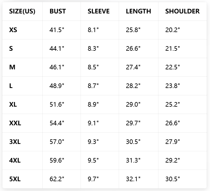 TOP SIZE CHART (inch)