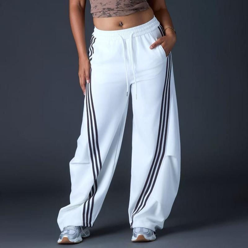 ·Easy to pair: With crop tops, hoodies, or sneakers.VersatilityThese track pants are versatile and can be paired with various outfits. They are ideal for both casual wear and workouts. The wide leg design and striped pattern make them a standout choice for streetwear.