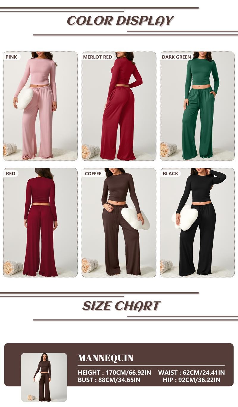 Women's 2-Piece Activewear Set Elevate Your Workout Style Transform your wardrobe with the Women's 2-Piece Activewear Set. This set features a long-sleeve crop top and wide-leg pants, perfect for versatile wear. The stretchy fabric ensures a snug, supportive fit, enhancing your movements effortlessly. Ideal for workouts, casual outings, and lounging, this set offers both style and comfort.