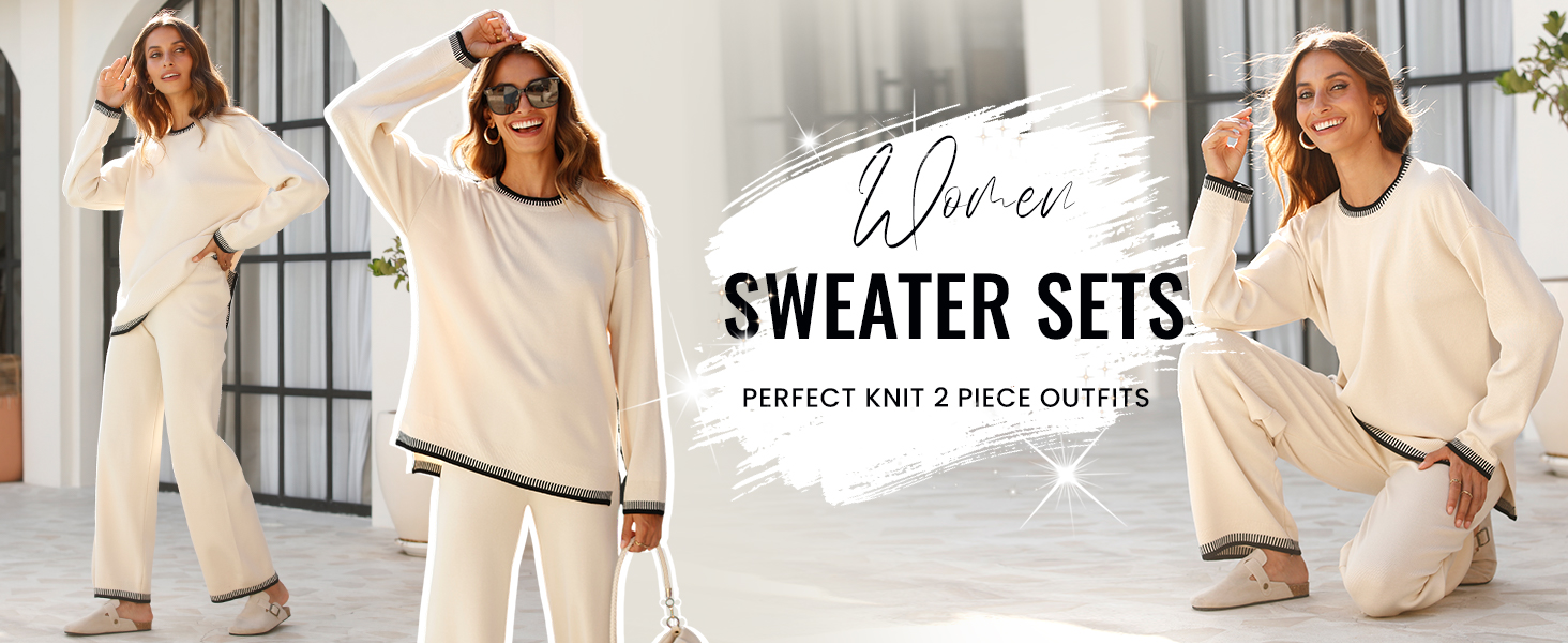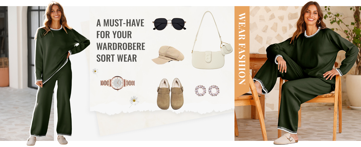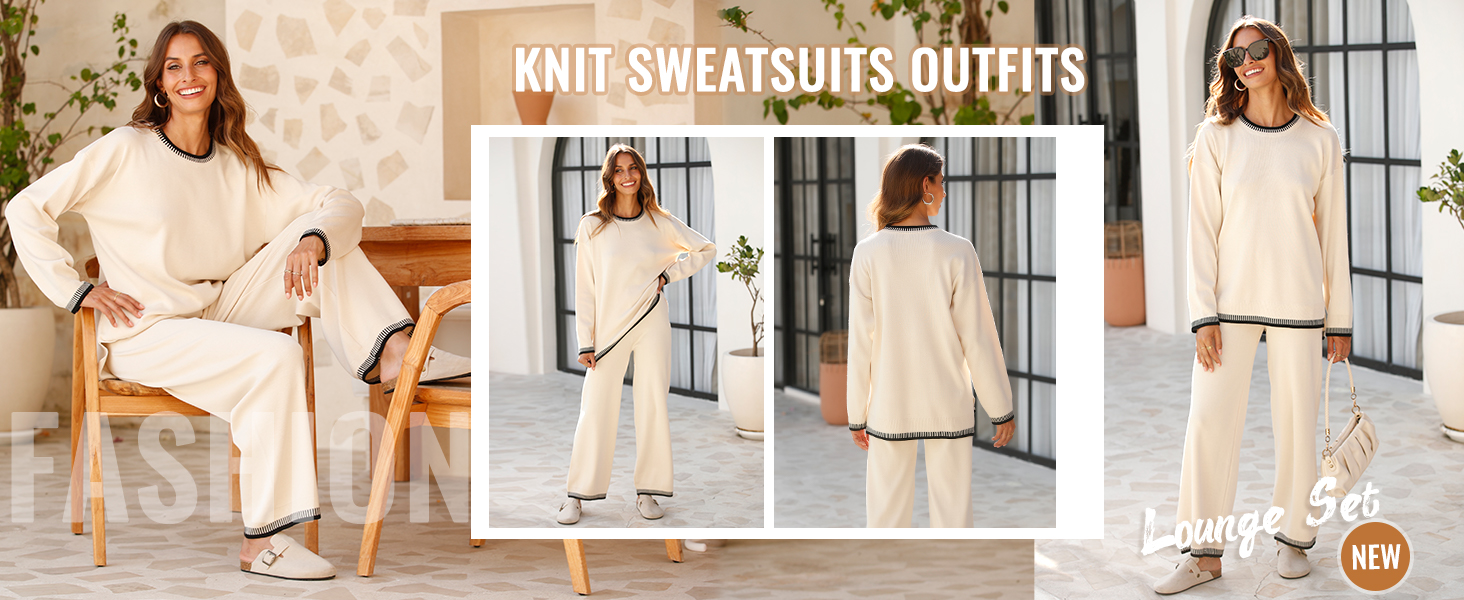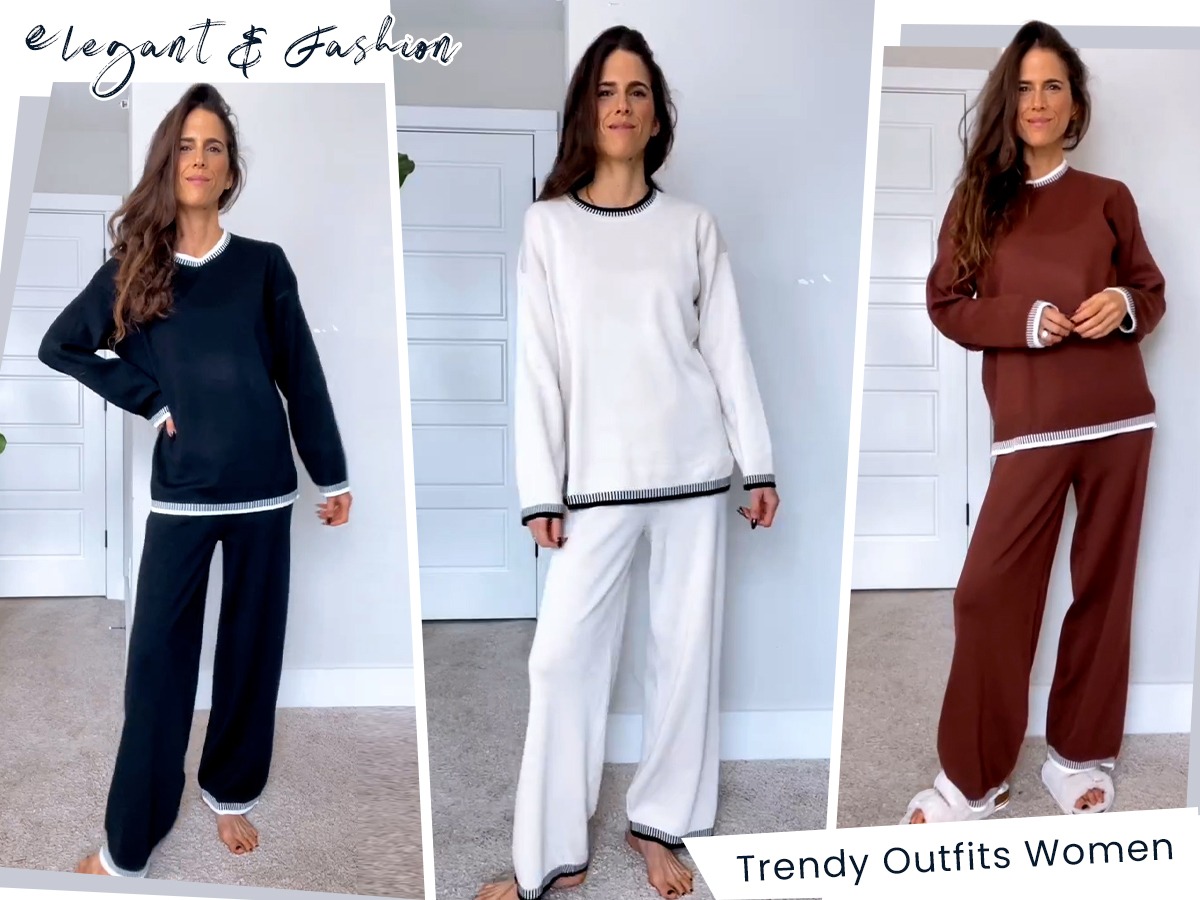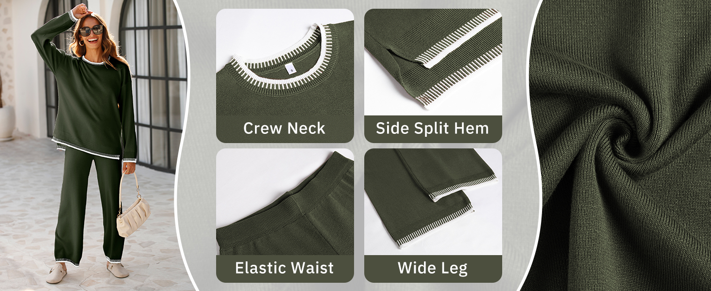 • The top includes a crew neck sweater with long sleeves, dropped shoulders, and ribbed cuffs and hem. The pants feature an elastic waistband and a high waist design. Both pieces are loose-fitting, suitable for all body types. The contrasting design adds a chic touch to your outfit. Stay stylish while feeling comfortable.Modern Comfort for Everyday Wear