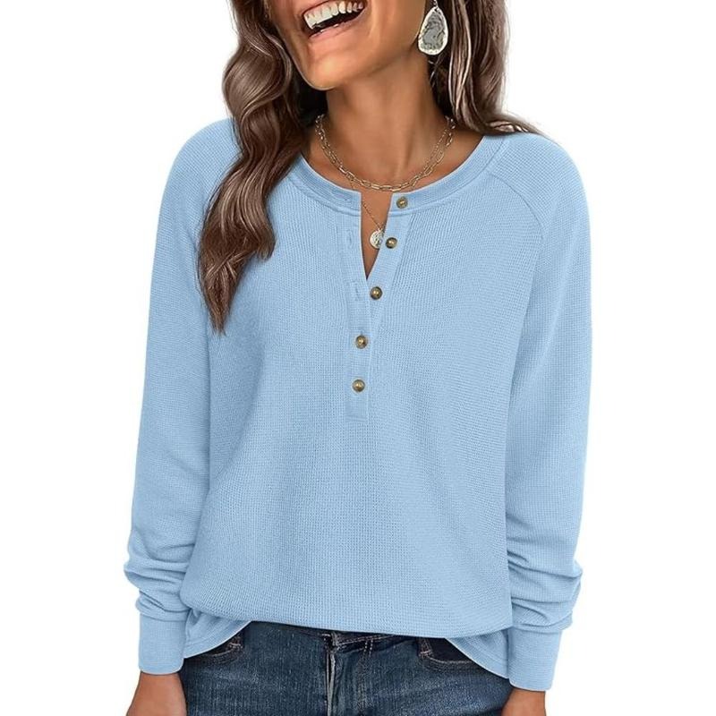 Womens Long Sleeve Waffle Knit Shirts Casual Fall Clothes