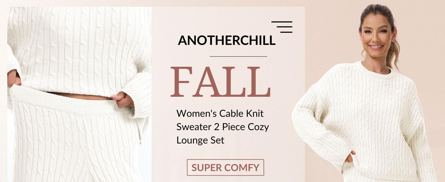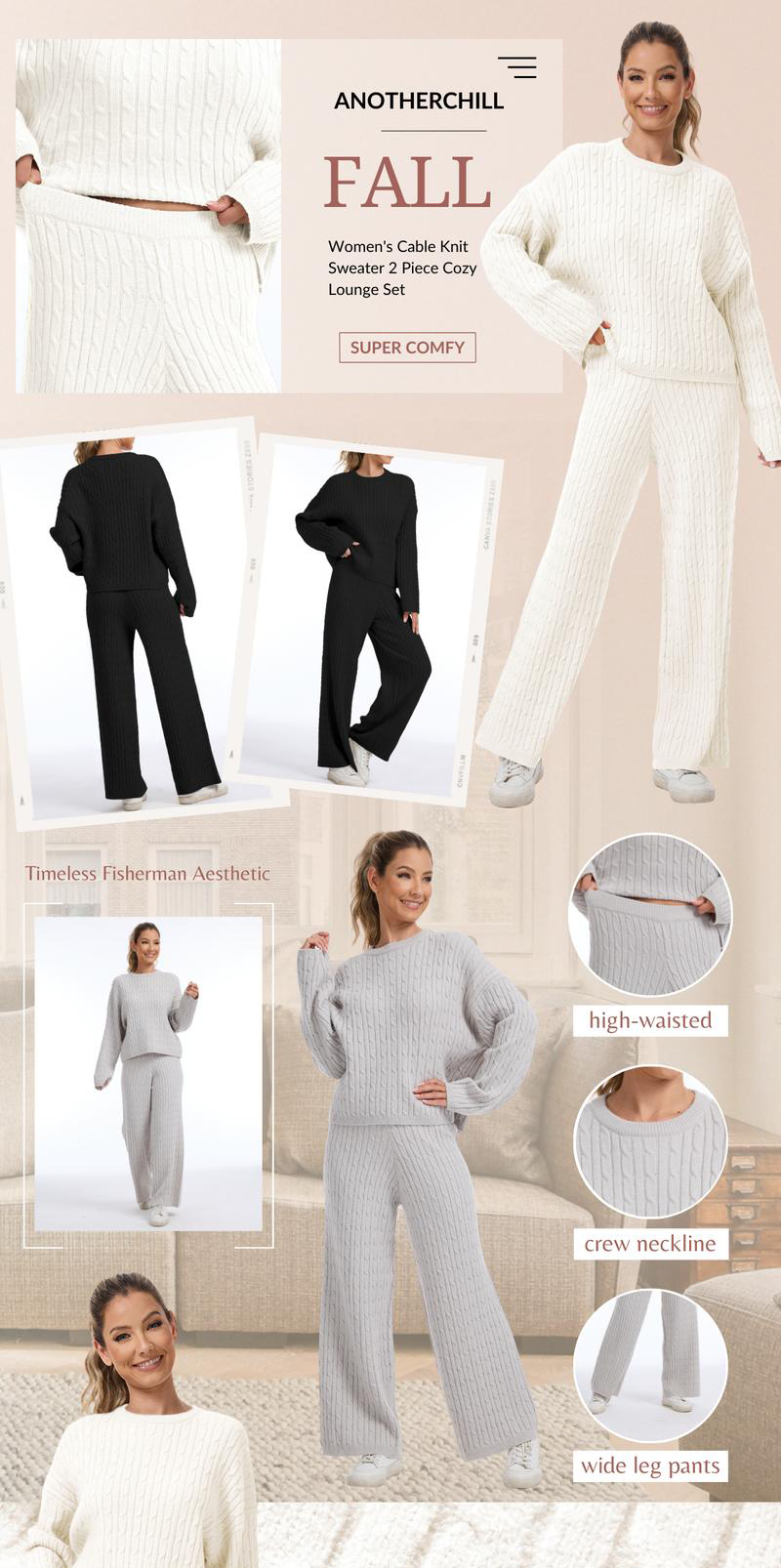 ·Care Instructions – To maintain the softness and durability of the knit fabric, we recommend hand washing or cold gentle washing and avoiding high-heat drying.Stay warm, stylish, and comfortable with the Chill Women's Cable Knit Sweater Lounge Set – the perfect 2-piece outfit for fall and winter.