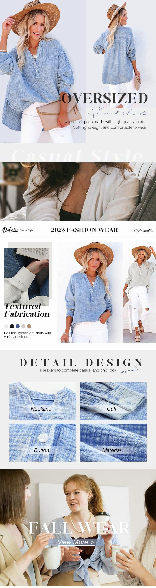 ·Feature: V Neck, Solid Color, Front Button Closures, Long Sleeves with Button Cuffs, wear as 3/4 sleeves or full sleeve, Side Slit, Textured Fabrication, Boyfriend Style, Loose Fit Shirts