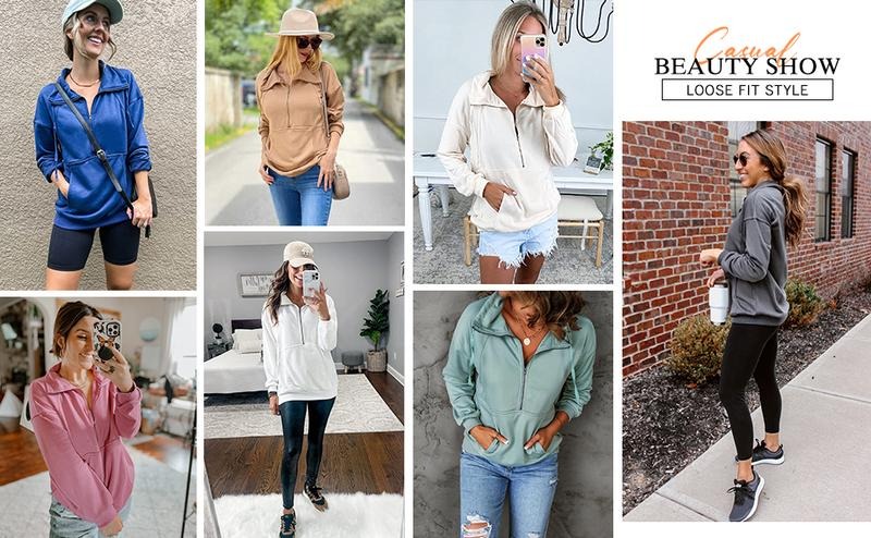 Soft + oversized = fall essentialHalf-zip with pocket Cozy done right ️No hood, clean look—easy to styleErrands to date night—she’s got rangeSolid color + big pocket = ready to go!
