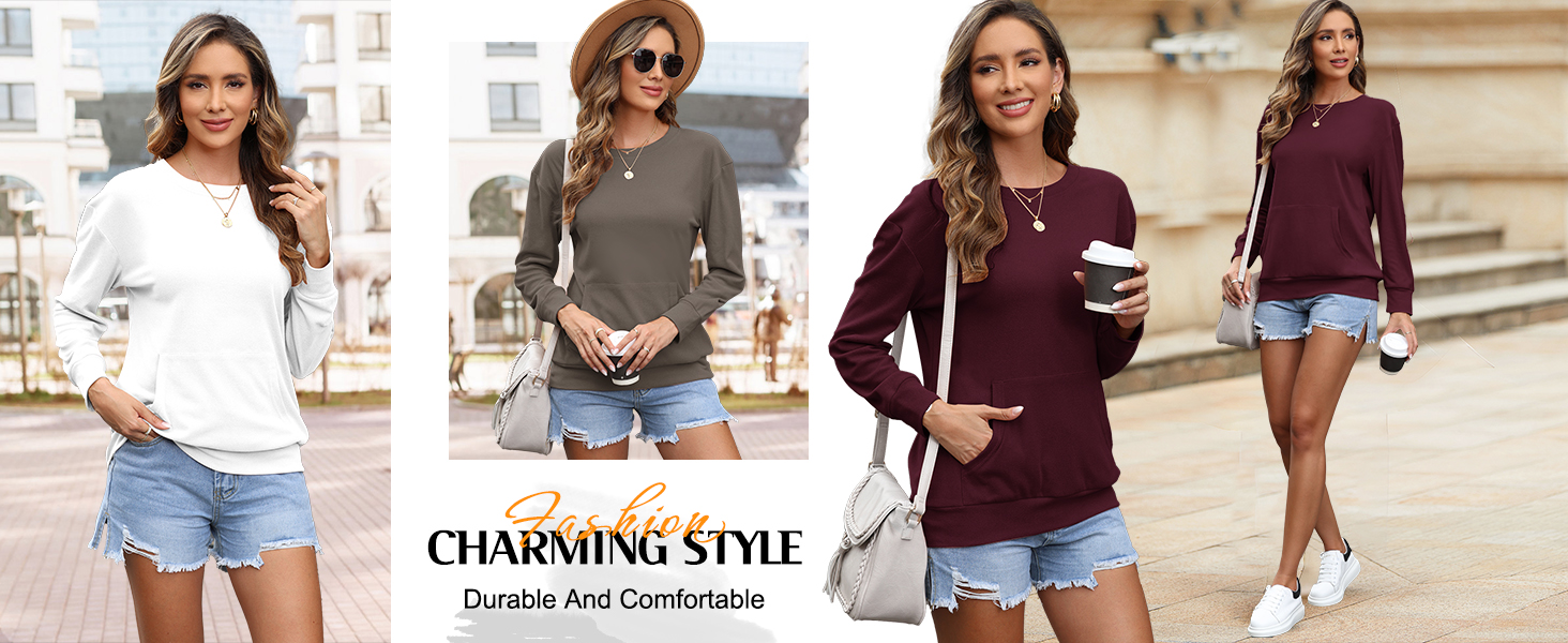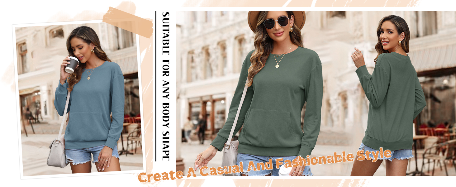 【Material】90% Polyester + 10% SpandexThis sweatshirt is lightweight, stretchy, and breathable. The fabric is durable and soft against the skin — designed for daily wear and all-day comfort.