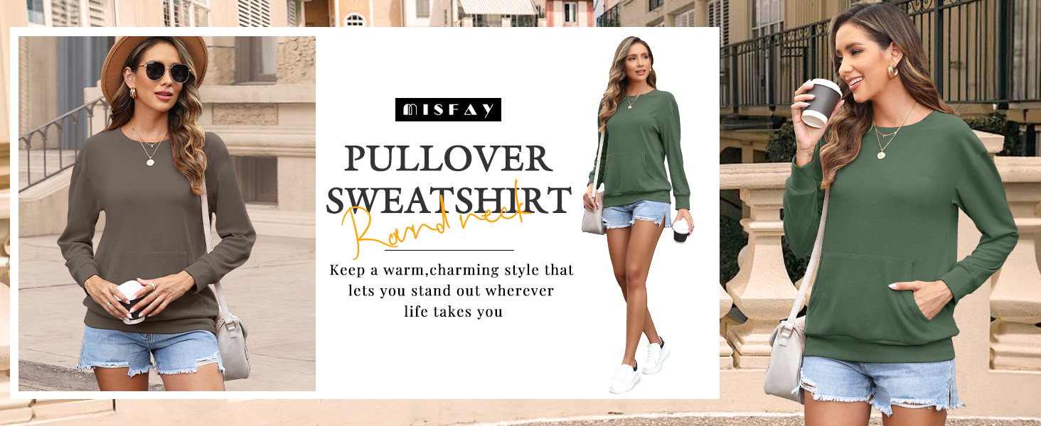 【Features】This hoodless crewneck sweatshirt features a classic loose fit and a large kangaroo pocket, combining everyday comfort with a chic minimalist design. Crafted from buttery soft fabric, it keeps you warm, cozy, and stylish through fall and winter. Available in multiple trendy colors to match your mood and wardrobe.