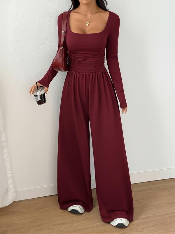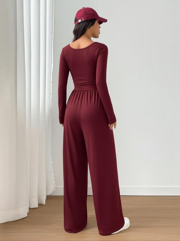 【Fashion-forward neckline】: Features a wide round neckline that adds a contemporary touch, distinguishing it from typical jumpsuits.