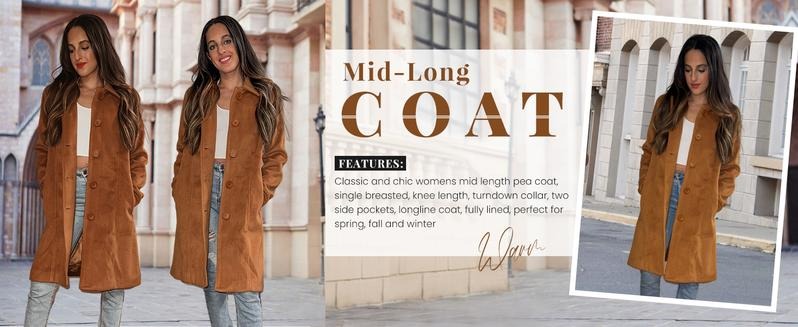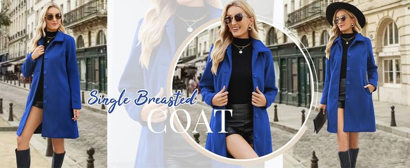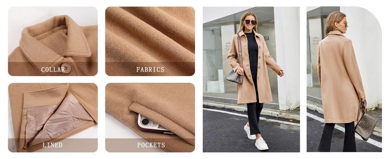 Elegant and Practical Design This winter overcoat for women features a comfy regular fit with two side pockets. The single-breasted design and turndown collar add a classic touch. Perfect for knee-length coverage, this mid-length pea coat is fully lined. It pairs well with leggings, jeans, and high heels, suitable for daily casual wear, holidays, and seasons like spring, fall, and winter.Care Instructions