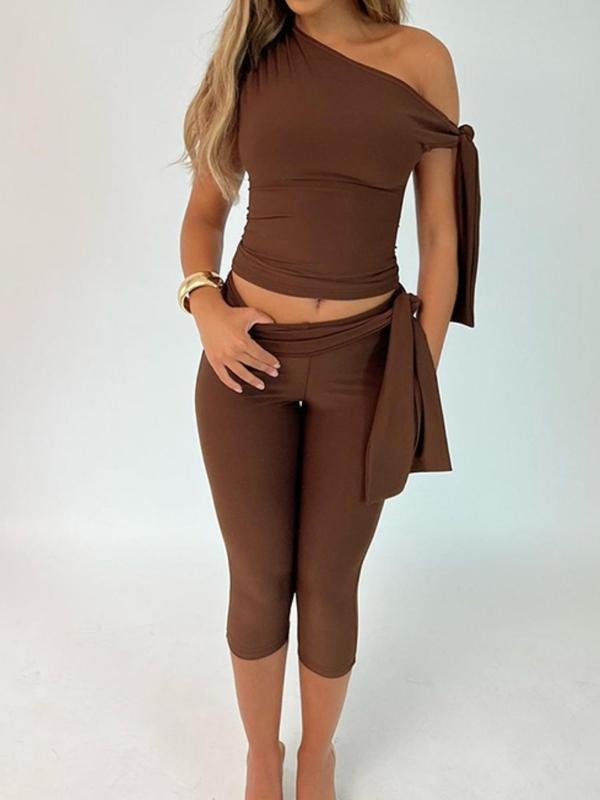 【Asymmetrical Neckline】: The top features a unique asymmetrical neckline, providing a modern touch that distinguishes this outfit from standard two-piece sets.