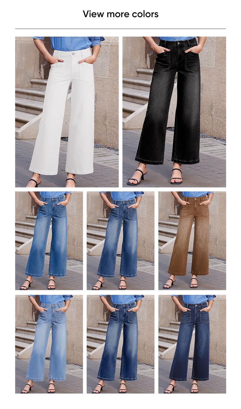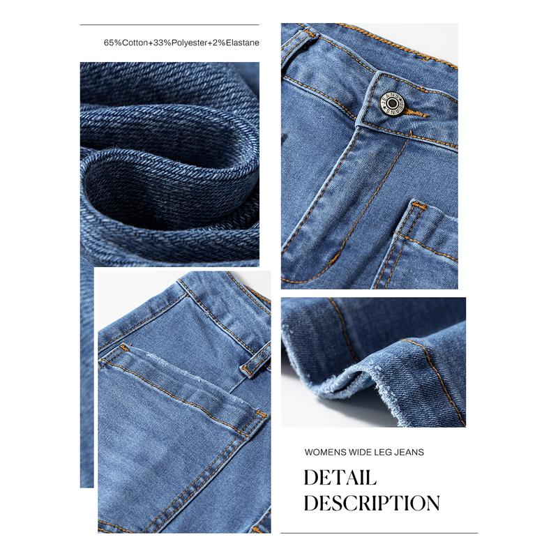 Flattering Style: These women's wide leg jeans feature a convenient button and zipper closure, two stylish slanted pockets with distressed detailing at the front, two practical large pockets at the back, and an ankle length for more versatility, making them the perfect combination of style and function