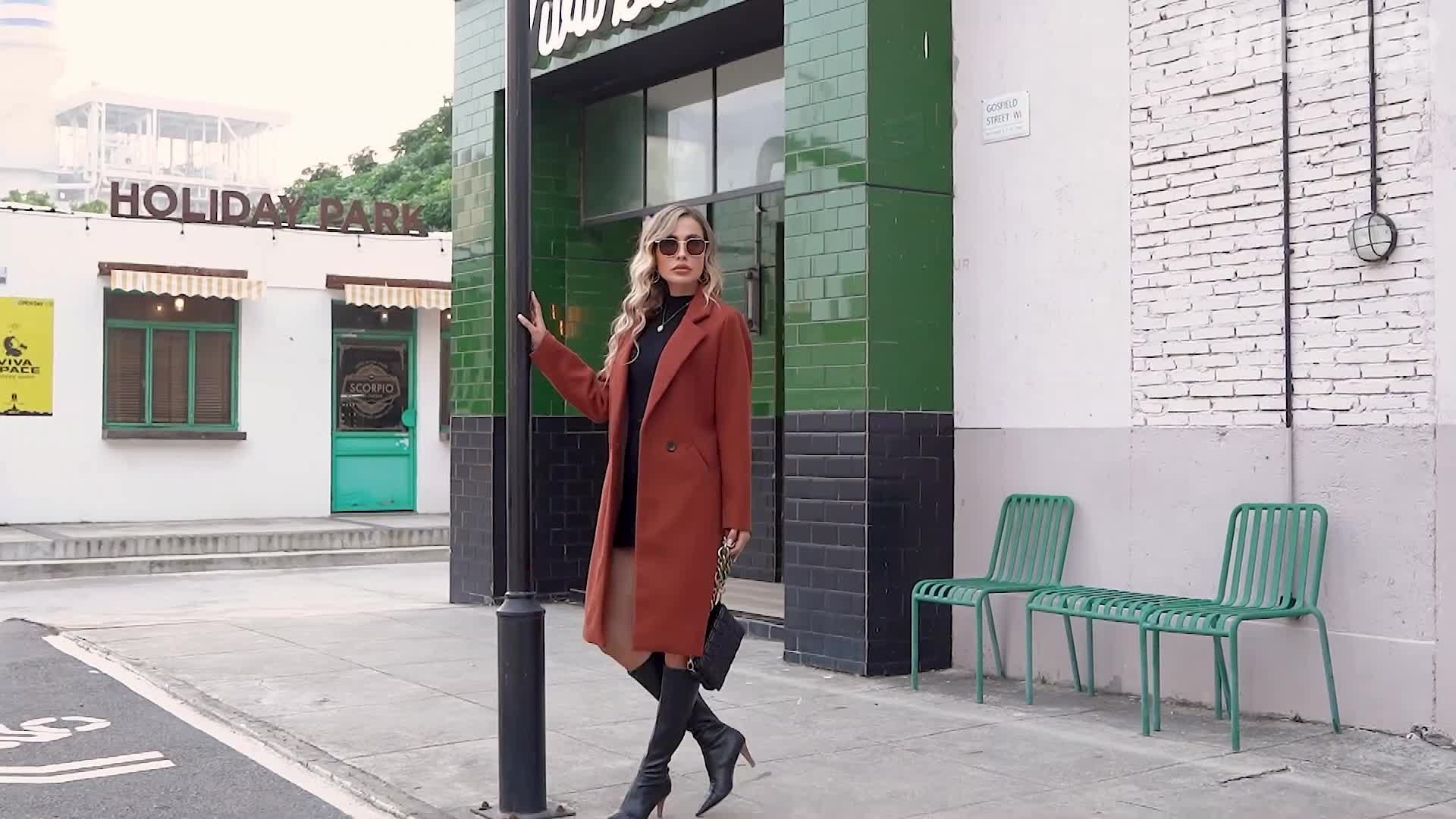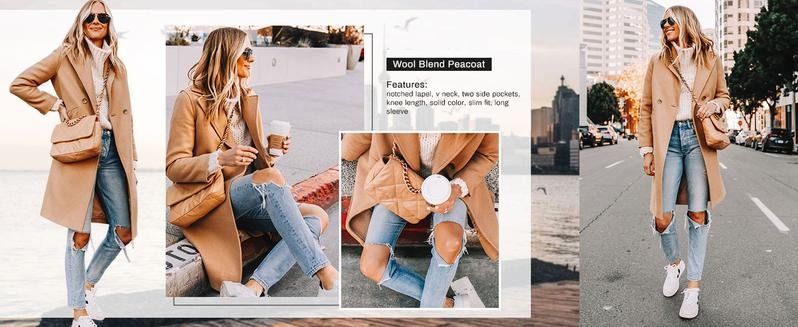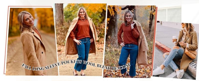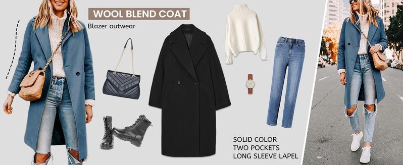 Design: wool coats for women features the long sleeve, notched lapel collar, solid color, slim fit,two side pockets;women's knee length coat available in multiple colors.