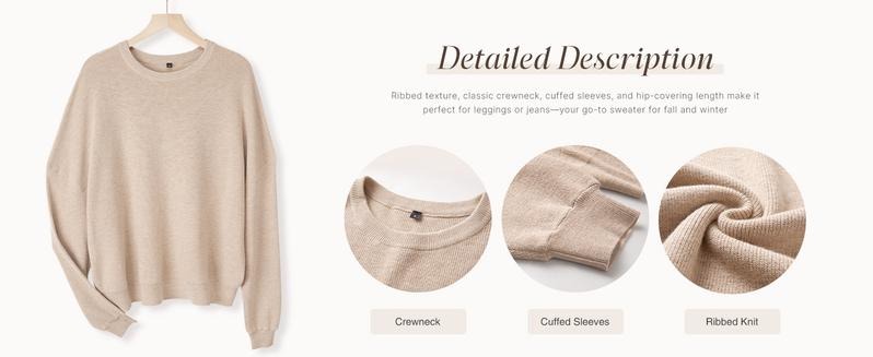 ·Easy Everyday Style: Ribbed texture, classic crewneck, cuffed sleeves, and hip-covering length make it perfect for leggings or jeans—your go-to sweater for fall and winter