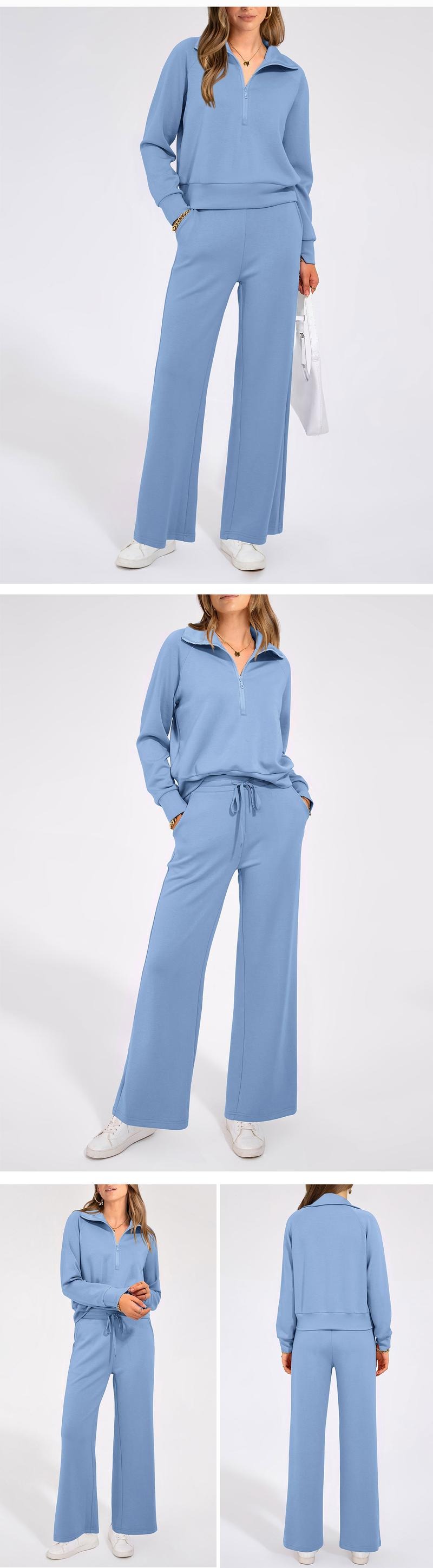 ·CHIC FEATURES: Women's Sweatsuit Set With Both A Sweatshirt And Palazzo Pants, You Can Mix And Match Your Style Effortlessly. The Wide Leg Pants With Drawstring Provides A Relaxed And Flowy Fit That Flatters All Body Types. The Half Zip Design Of This Pullover Sweatshirts Allows For Easy Wearing And Adjusting, Giving You The Freedom To Customize Your Comfort. Complete With Two Side Pockets, This Tracksuit Set Offers A Practical And Convenient Storage Solution For Your Essentials.